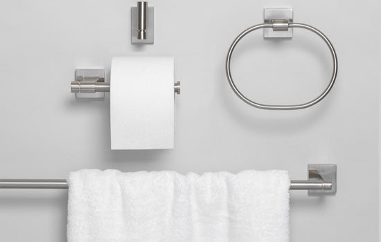 Instantly upgrade the décor in your bathroom with a new set of bathroom fixtures including a towel bar, toilet paper holder, towel ring and a robe hook. This is the easiest and most cost effective way of updating your bathroom. Choose from multiple sizes, designs and colors. Our sets are available in a large number of colors including satin nickel, matte black and champagne gold. Feel free to give us a call at 877-417-7771 if you have any questions.