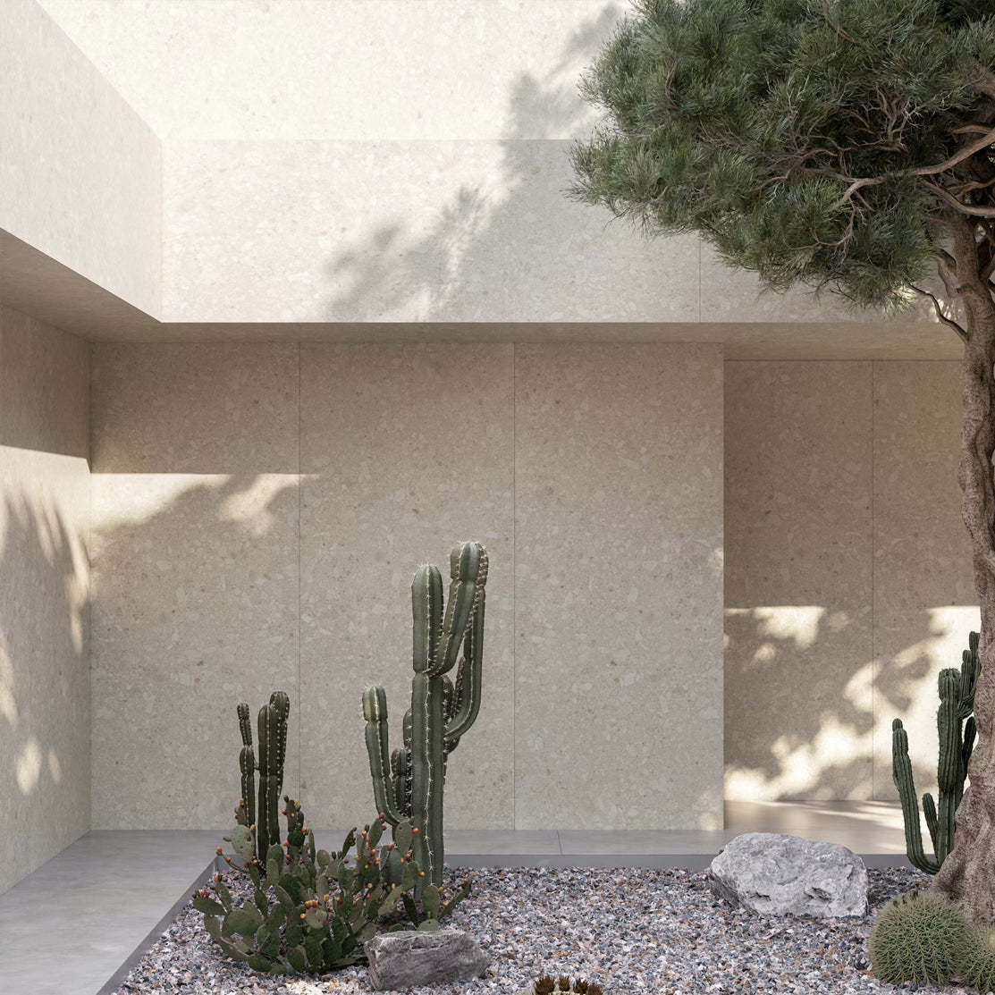 We have drawn on the distinctive, multiform structure of the Italian stone Ceppo di Gré to create an innovative finish in shades of cream never before seen in nature. A warm design, particularly suitable for large flooring and cladding applications, both indoors and out.