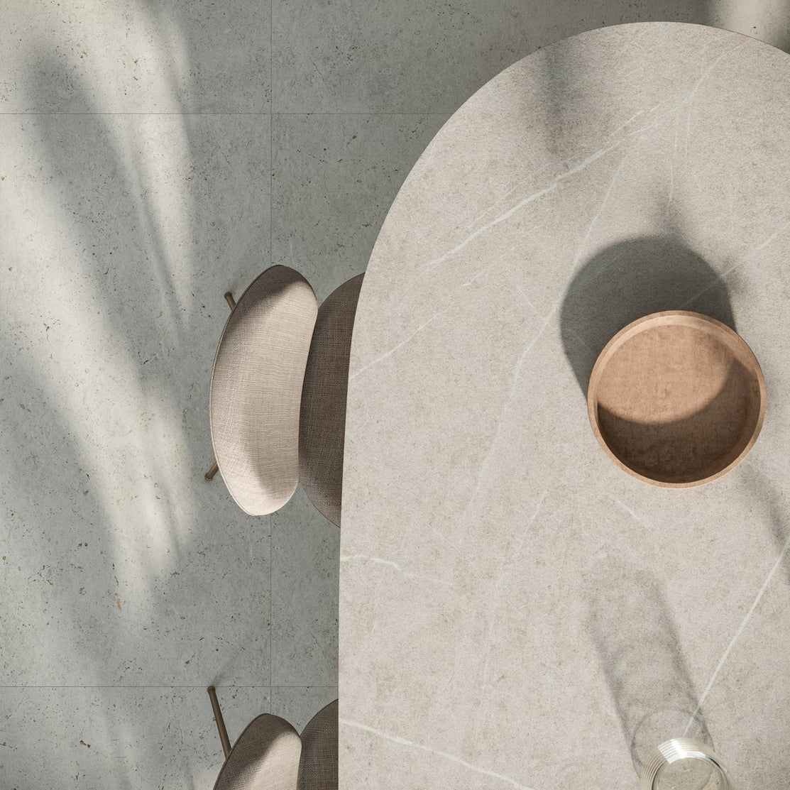 The traditional elegance of Spanish Crema Marfil marble with a smooth finish, creamy backdrop, and subtle hints of gray. A perfect color for minimalist designs with a warm touch, suitable for use in all types of projects, from interiors to floors and façades.