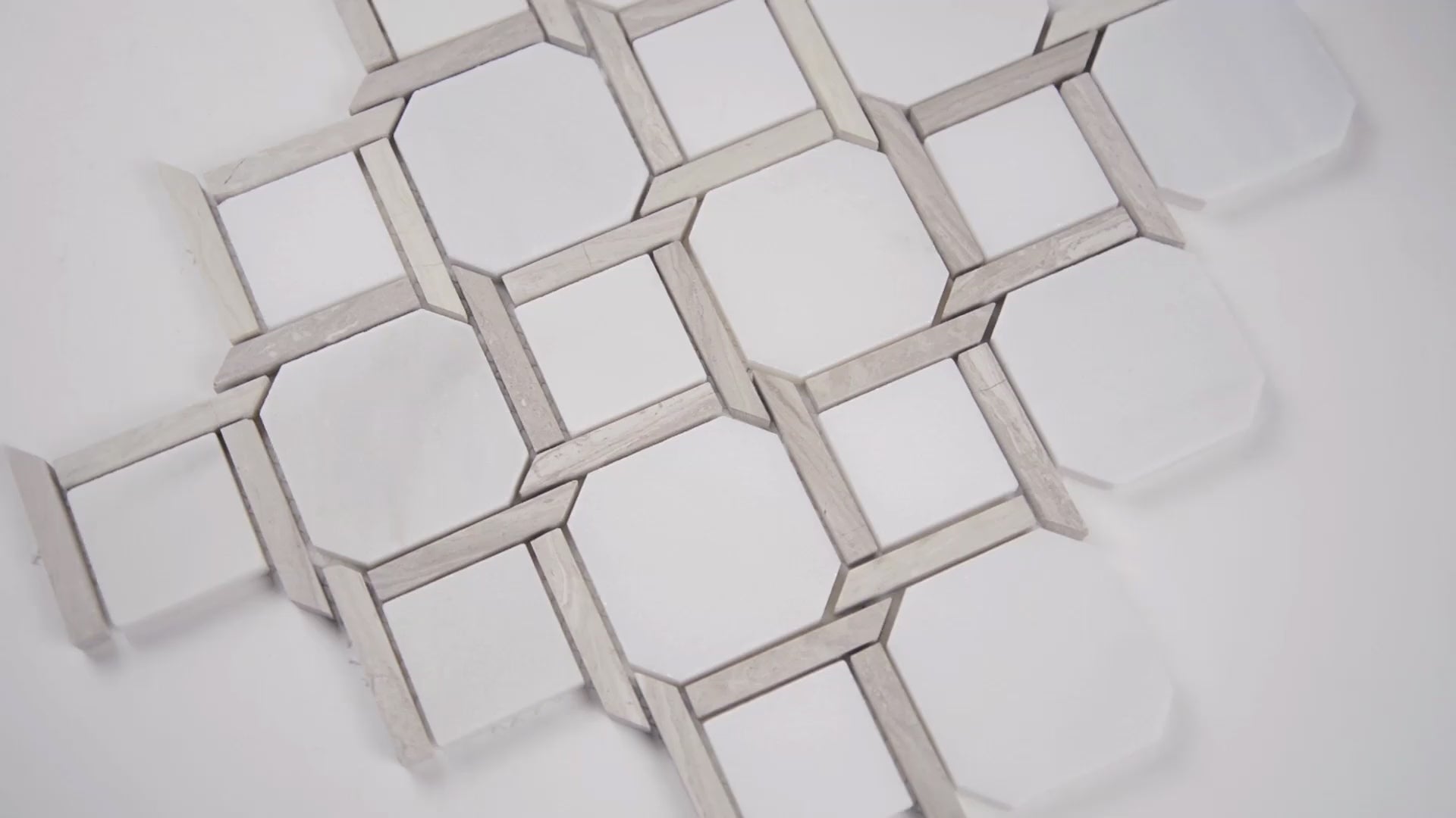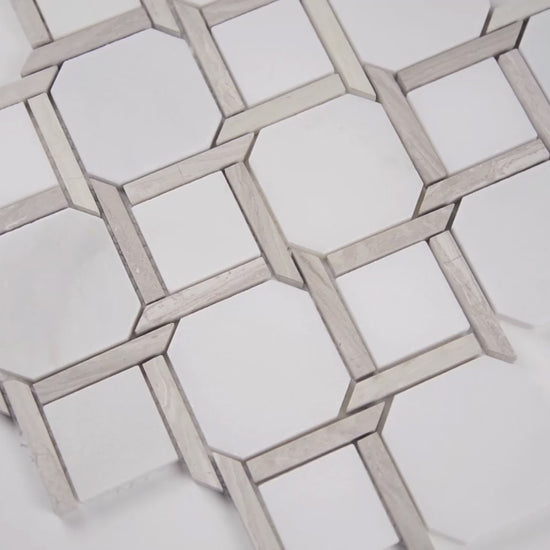 Marbella Lynx Marble Tile features an interesting interlocking design using a mix of white marble with beige stone. The neutral geometric tiles complement various color schemes and design styles, from contemporary spaces to traditional designs with old-world charm. This backsplash tile is perfect for creating stunning countertops and backsplashes, patterned wall tiles, and geometric floor tiles.Â