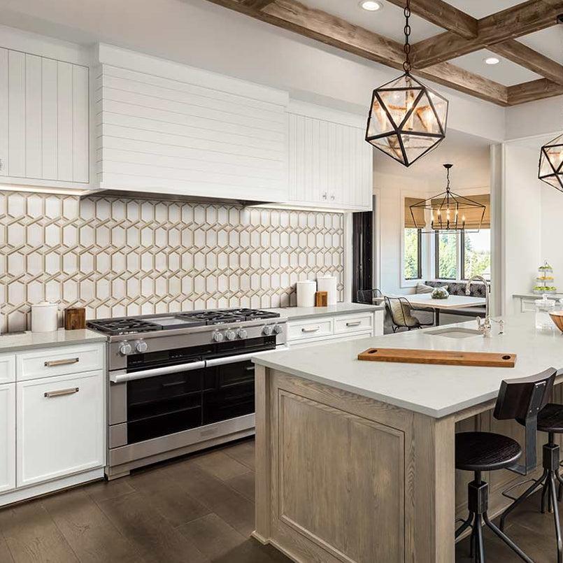 Royal Link Geometric Tile features a soothing white marble background accented with a unique interlocking link pattern for a look that adds interest and dimension to any space. This beautiful backsplash tile is suitable for a wide range of applications, from kitchen countertops to bathroom geometric floor tiles to living room patterned wall tiles. Royal Link is Greenguard Indoor Air Quality Certified® and comes mounted on mesh-backed sheets for simplified installation and a professional finish.