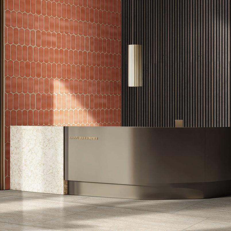 Terra Glossy Ellipse Mosaic Tile brings a warm pink terracotta color to your space, crafted from recycled glass for a sustainable touch. Its glossy finish adds a sleek, reflective quality, while the mesh backing ensures easy installation. Perfect for stylish accent walls, backsplashes, and even residential floors, this versatile tile delivers both beauty and eco-friendly charm, enhancing any interior with a modern yet earthy vibe.