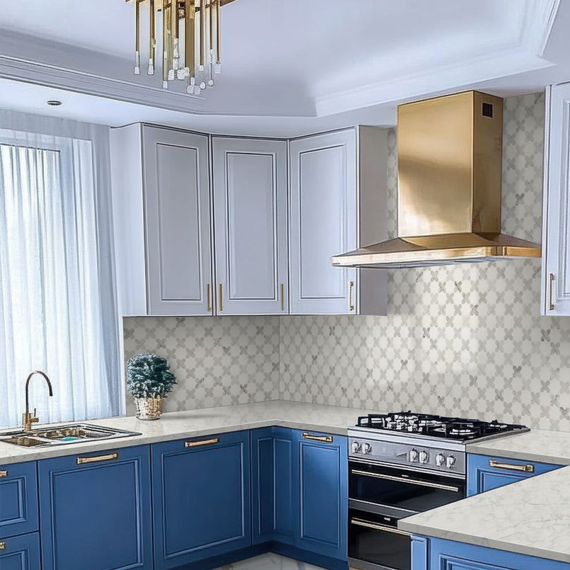 Add charm and detail to your space with Vera Anne Pattern Polished Tile. Featuring a white background with dove grey crosses in a fun checkered pattern, the neutral palette of this genuine marble tile works with nearly any color scheme. It’s an ideal choice for kitchen backsplash, fireplace façades, shower surrounds, bathroom vanity walls, and more. Not only stylish, but also durable and low maintenance, Vera Anne Pattern Polished Tile updates your space with the beauty of natural marble. Tiles are strategically arranged on mesh backed sheets for simplified installation and professional look.