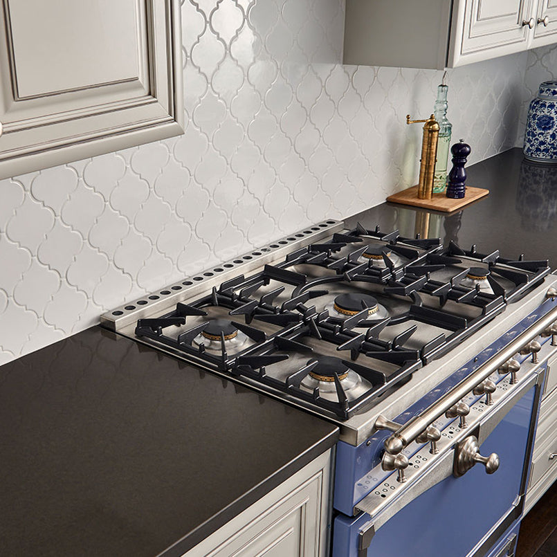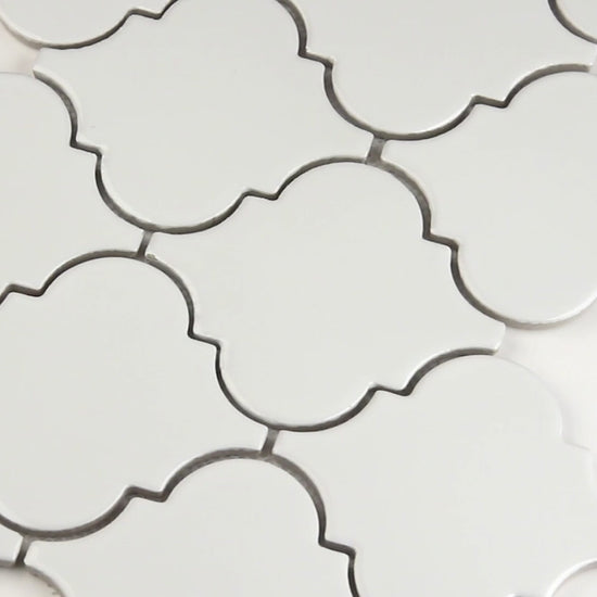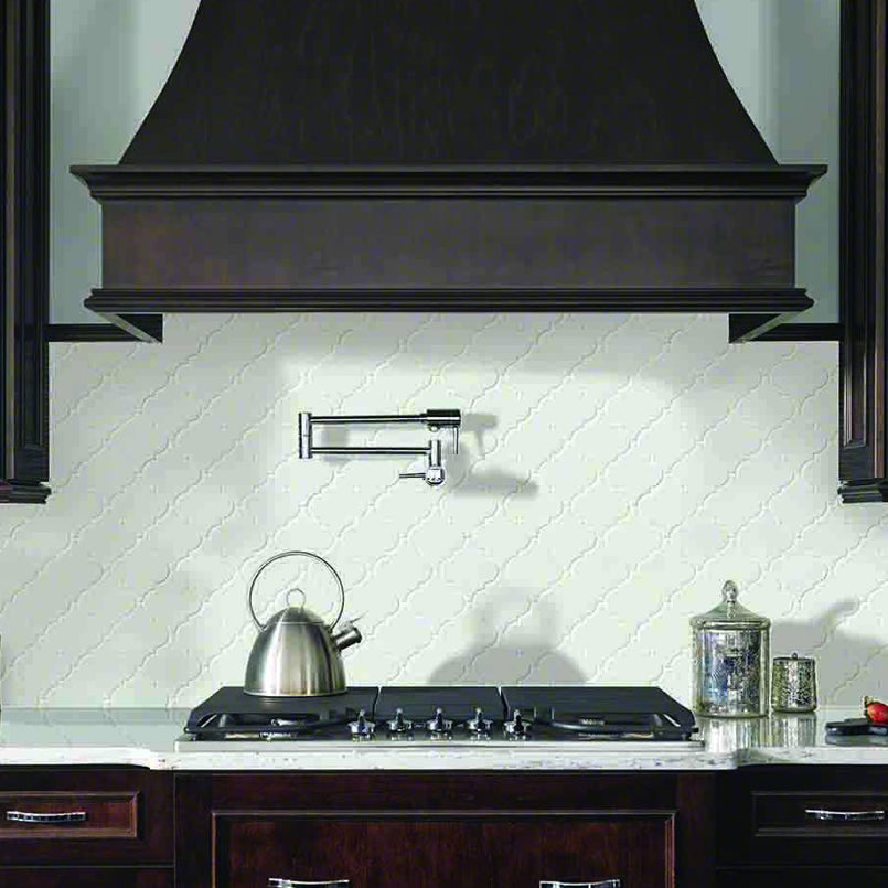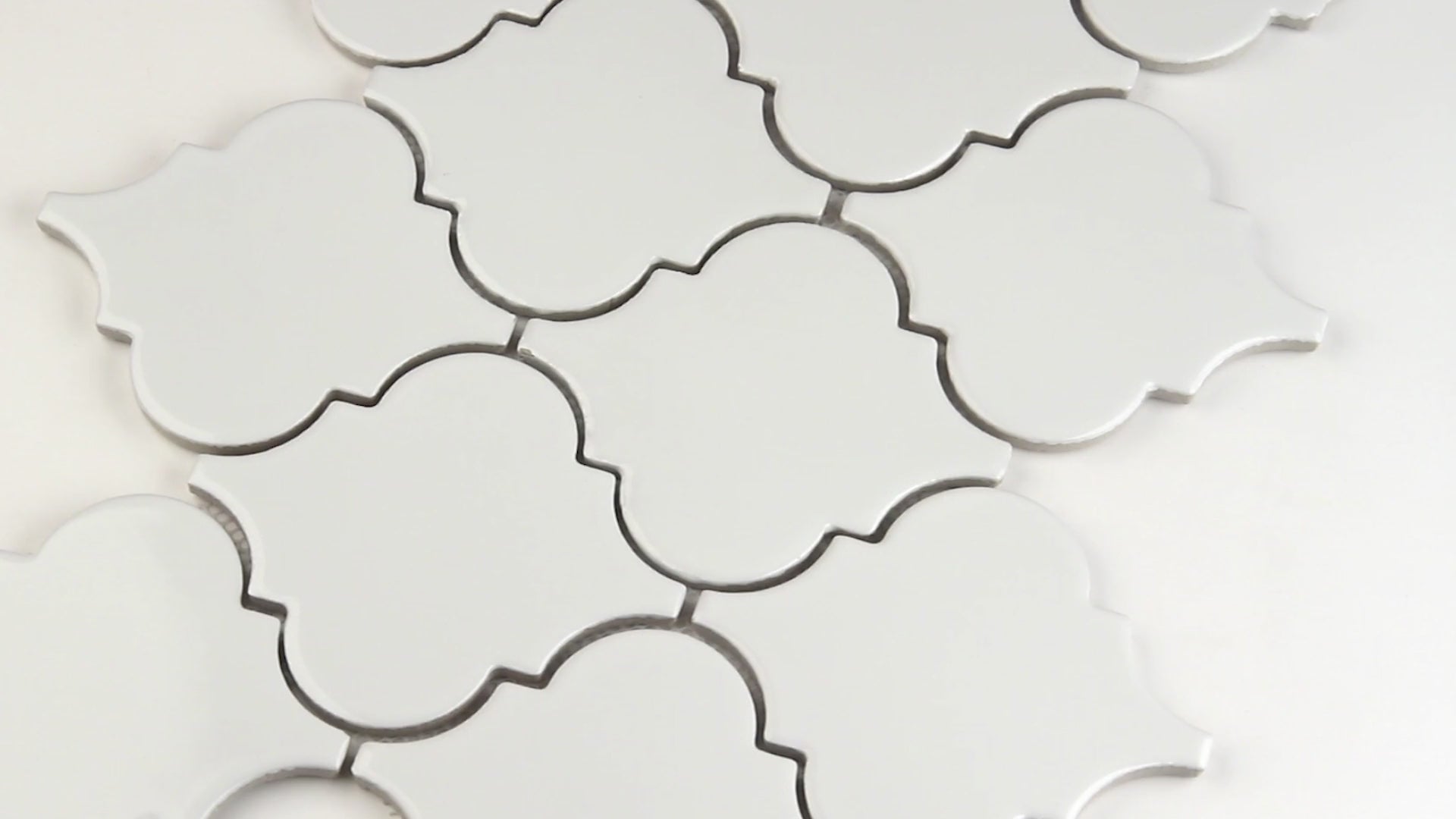 Whisper White Arabesque Tile from the Highland Park Collection, creates an intricate and dramatic pattern installation. The smooth and subtle white finish of this backsplash tile lends a timeless elegance to any space. To create a more dramatic kitchen backsplash or wall installation, consider contrasting grout to highlight the artistry of this tile.Â