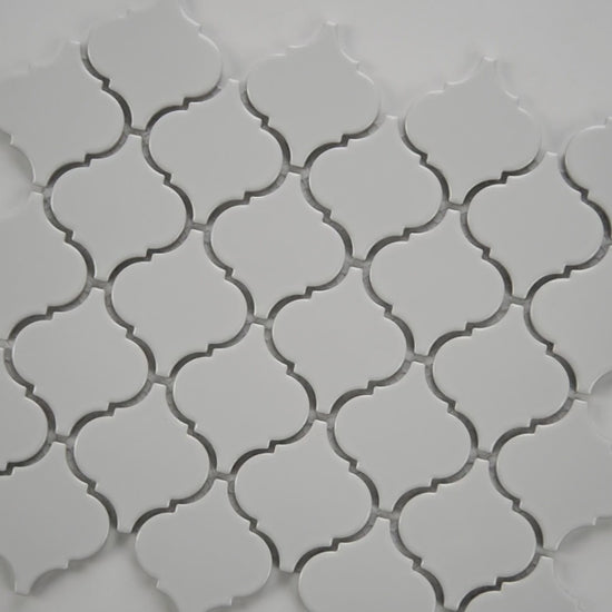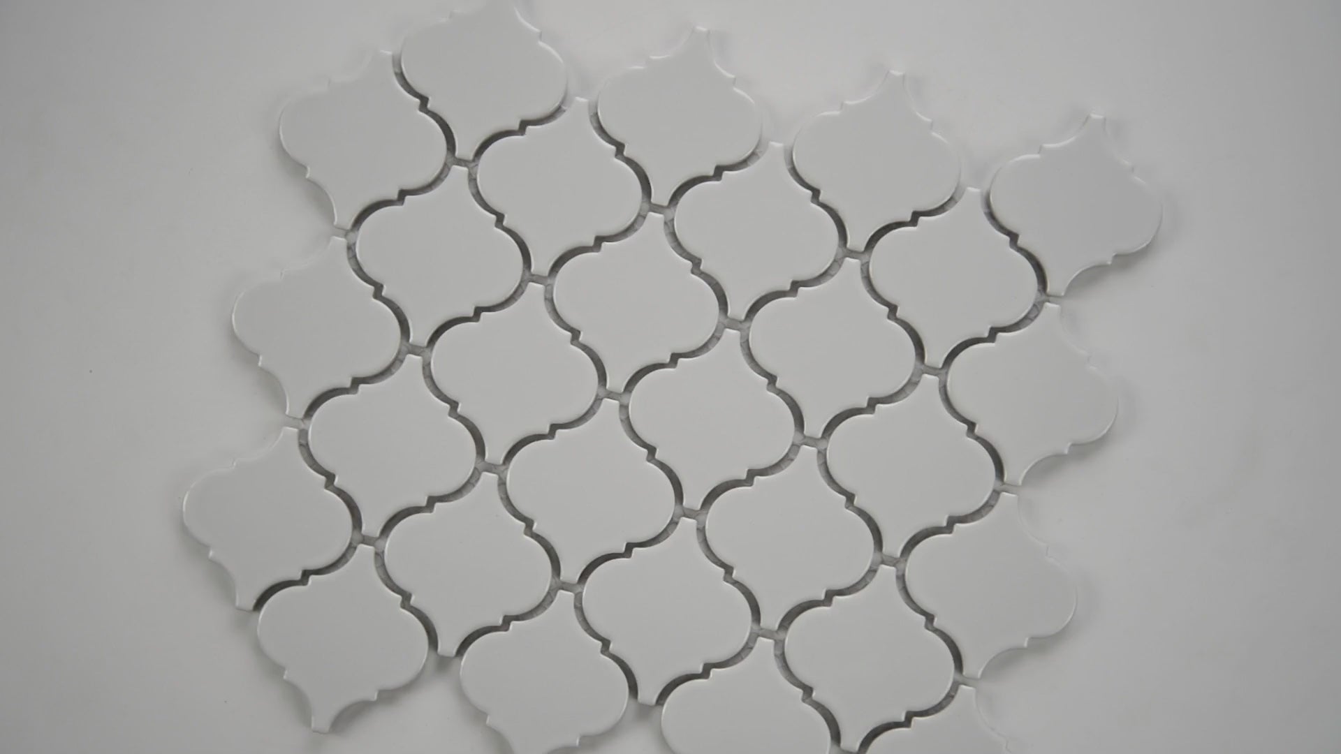 White Glossy Arabesque Tile features the iconic, elegant shape in a high-gloss finish. Suitable for walls, floors, and countertops, these porcelain mosaic wall tiles become a dramatic statement with contrasting grout or a subtle role with grout in the same tone. This backsplash tile also coordinates beautifully with a wide range of other ceramic wall tile options like subway tile and arabesque tile patterns in our extensive inventory.